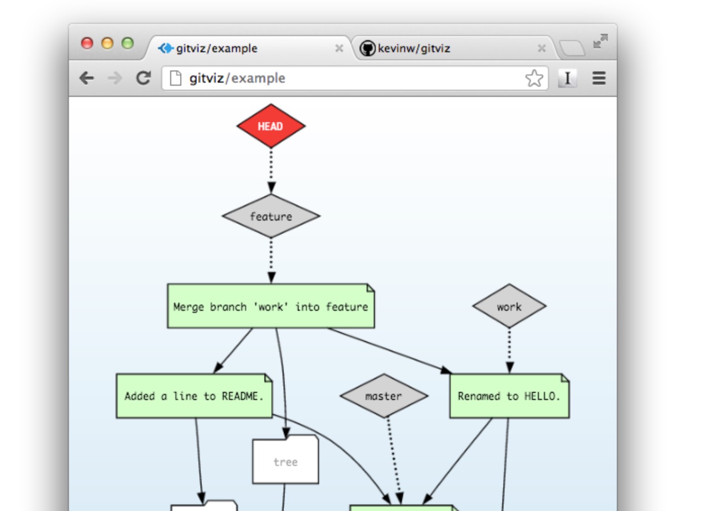 Visualize git repository internals as they change, live, in the browser.